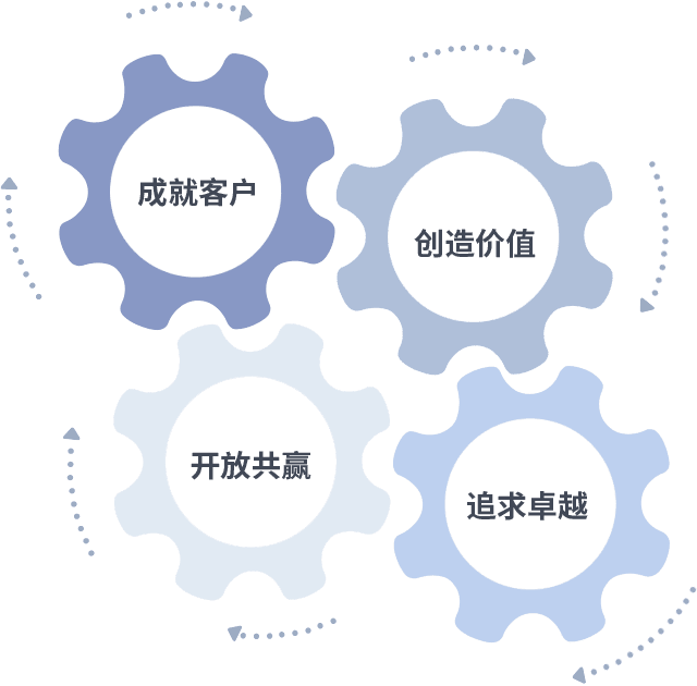 成就客户是一切决策的出发点,,,,创造价值是衡量所有工作的标准,,,追求卓越是3377体育做事做人的态度,,,,开放共赢是3377体育的格局也是最终的结果。。。。价值观的齿轮环环相扣,,推动着组织里的每个人不断向前。。